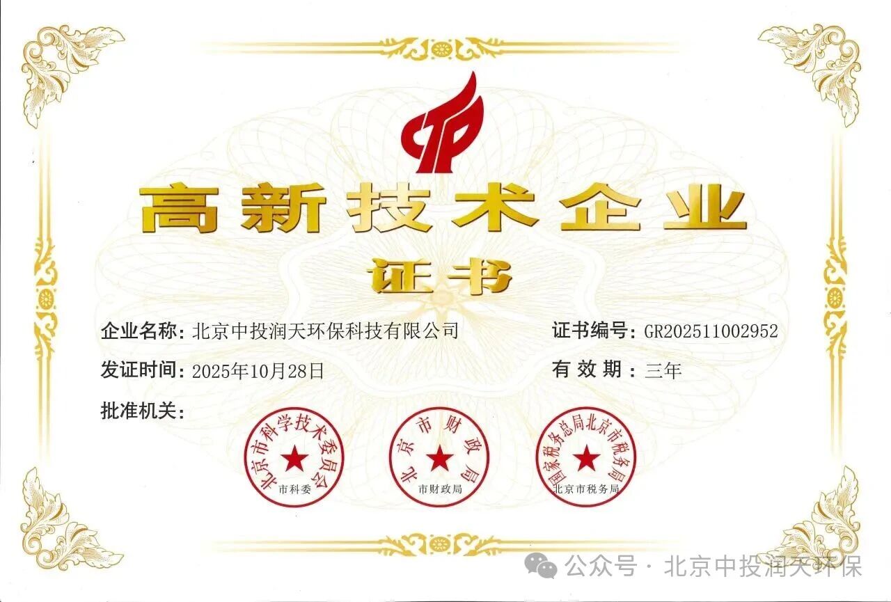 高新技术企业资质的延续,是对润天环保持续研发投入、核心技术积累及成果转化能力的直接肯定。公司多年来深耕废弃物处置及资源化等细分领域,创新技术体系不断发展;北京市知识产权试点单位资质,肯定了润天在知识产权的创造、管理、运用和保护方面的带头示范效应,为技术创新和业务发展提供了坚实保障;“专精特新”企业资质的延续,则充分体现了润天在自身专业领域的技术专注度与市场领先地位,体现了企业在专业化、精细化、特色化、新颖化发展道路上的坚定步伐。