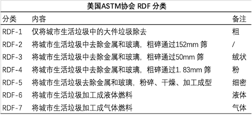 RDF是垃圾衍生燃料(Refuse Derived Fuel)的简称,是通过对生活、工业等垃圾的破碎及分选,从垃圾中除去金属、玻璃、砂土等不燃物,将垃圾中的可燃物破碎、干燥,最终制成。具有热值高、燃烧稳定、易于运输、易于储存、二次污染低和二噁英类物质排放量低等特点。美国于1988 年建成日处理2000t的RDF工厂。 1983年美国检查及材料协会(ASTM)开始按城市生活垃圾衍生燃料的加工程度、形状、用途等将RDF 分成7类。并在接下来的20年间逐渐形成了目前使用的一系列标准。